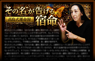 ただ原因・現状を解析し、教えるだけでは絶対に終わらない! その先の真実を徹底的に追求していくことこそ、高島最強の姓名学士の真骨頂です。あなたの未来がどうなっていくのか、少しでも良い未来を引き込むためにはどうあるべきなのか……高島照令が絶対的な根拠と共にしっかりとアドバイスして参ります。核心突く「禁断級」の鑑定で、あなたの運命すべてを暴いていきましょう。